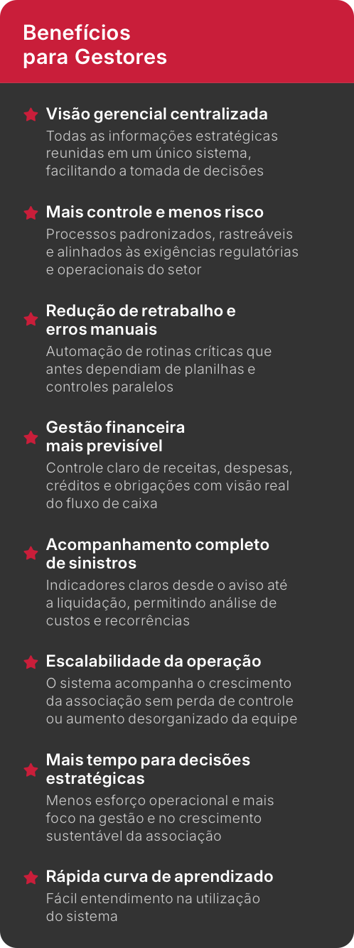 Com uma arquitetura intuitiva e totalmente integrada, o sistema organiza processos, centraliza informações e oferece aos gestores e suas equipes operacionais uma forma mais clara, ágil e confiável de conduzir cada etapa de suas operações.